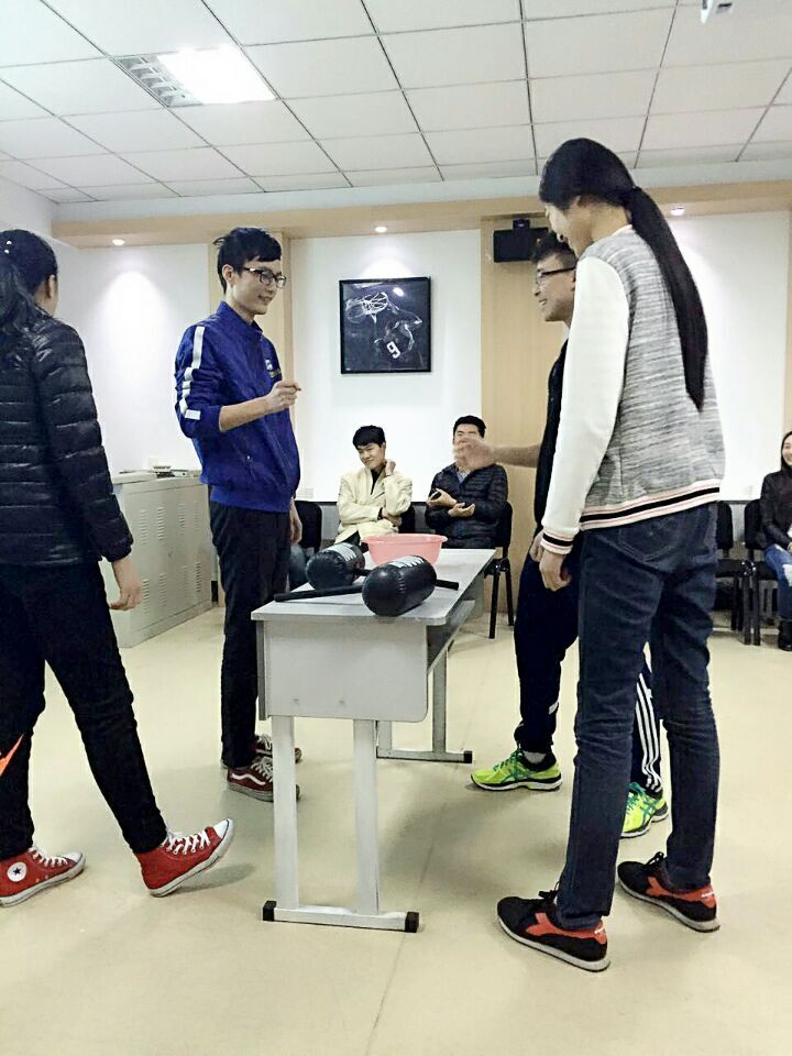 本次心灵沟通活动以“命运之锤”拉开帷幕,分为两队“窜天猴”队和“二踢脚”队,由各组队员选出队长,由队长带头带领队员分别进行四场游戏的的较量,在四场游戏的PK中各组队员相互协作,队长与队员之间也有了相互深入的沟通,在四场游戏的解压放松之后以“解决烦恼”为主题的头脑风暴开始深入到各位同学的心理面,每位同学将自己近期所遇到的苦恼写到纸上,放到准备好的纸盒里,由公司朋辈心理辅导员张青玲击鼓,让同学相互传花球,鼓停花落的同学则随机抽取问题纸条,站到大家围好的圆圈中间,大声读出烦恼并说出假如是我我该怎么做,如果解决不了可以向周围同学求助。通过这一环节大家的困惑烦恼不仅得到了解决,而且让大家感觉到了集体的温暖。最后大家还唱了一首伟德官方网站校歌。