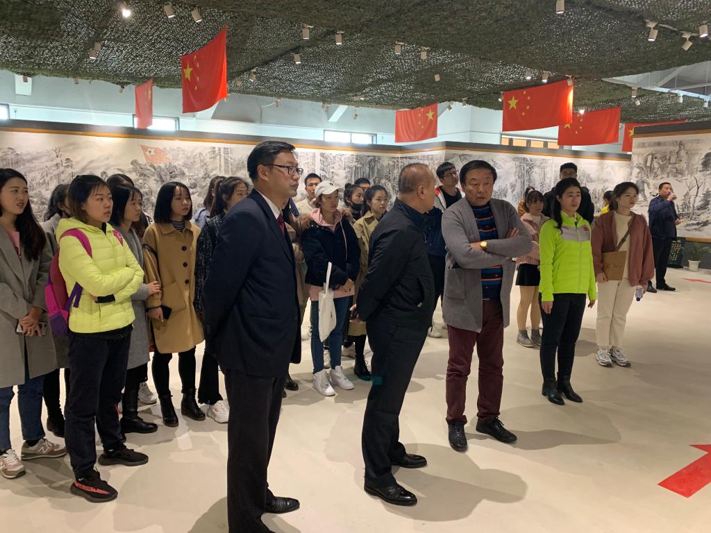 本次活动中我们有幸见到了赵明仁先生,赵明仁先生生动的为我们讲述了他创作时的心路历程,伴随着赵明仁先生的讲解,杨靖宇将军带领红军作战的一幕幕场景仿佛浮现在我们眼前。1940年2月23日,杨靖宇在独自一人与日伪军周旋5昼夜后,被敌人包围。16时30分,东北抗日联军第一路军总司令兼政委杨靖宇,为中华民族的独立、为中国人民的解放,壮烈牺牲。杨靖宇将军不怕牺牲,英勇战斗的精神让同学们肃然起敬。最后,大家在鲜红的党旗下重温了入党誓词,进行庄严肃穆的宣誓。
