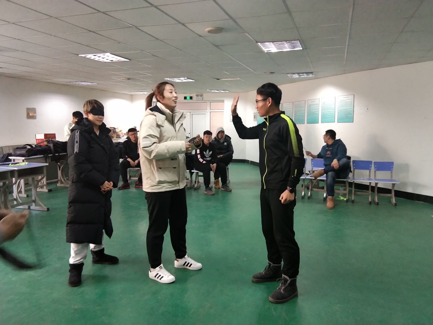 此次活动共进行4个游戏。第一个游戏“记忆考验”,从第一个人开始说"我来自长春"类似这种介绍自己的内容。第二个人重复第一句“我来自长春”并添加一句介绍自己的话。这样一直传下去,每传一个人就必须重覆前面的,另加新的一句。以此游戏进行热身,增进彼此了解。第二个游戏“捆绑接力”每队中两人一组,两个人同侧手臂和脚踝绑在一起,接力完成任务。同学们积极参与,并且在游戏过程中寻找最短时间内完成任务的办法,增强了沟通和交流。在游戏过程中逐渐建立相互信任、相互接纳的关系,学会互相配合、支持和协作。第三个游戏“传声筒”所有成员带上眼罩。从第一名队员开始将看到的词语在规定时间内用动作表达,将词语意思传达给第二名成员,第二名队员在传达给第三名队员,以此类推。最后一名成员说出猜想的词语,全场不允许语言沟通。此游戏把此次活动推向了高潮,大家比手划脚,开动脑筋,创造性的发挥个人智慧,想尽一切办法将看到的词语传给下一名同学,场内氛围十分热闹。此游戏引导大家学会共同克服困难,解决共同面临的问题,充分体会团结、合作的力量。最后一个游戏,“纸牌接力”大家轮流接力翻牌,直到纸牌按照顺序排列摆出。再进行此项游戏前,大家商量游戏战略,讨论十分激烈。