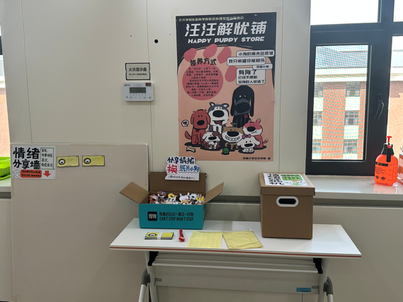 为普及心理健康教育,进一步提高员工们的心理素质,加强员工对心理健康教育的理解,促进员工的心灵健康成长,伟德体育研究生积极响应员工心理健康指导中心号召,由王紫萱老师指导,员工心理朋辈辅导员徐颖组织策划,于2023年5月6日至5月8日与艺术公司携手,在北苑三公寓和北苑四公寓内共同开展了“汪汪解忧铺”心理互助交流活动。