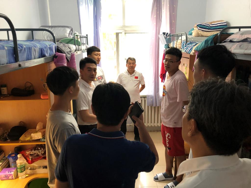 为深入了解伟德体育新生寝室生活情况,提高新生寝室安全意识,8月25日下午,伟德体育领导到南苑3公寓和南苑7公寓看望2019级新生。体育公司党委书记逄锦彩、经理裘鹏、党委副书记兼副经理田进、副经理佟强、2019级辅导员宫勖能及公司部分员工干部参加了本次活动。