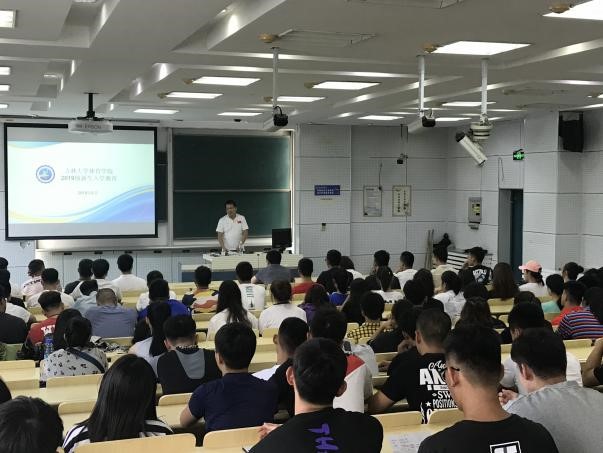 为使新生尽快适应新的学习、生活环境,实现由高中生到老员工的角色转变,8月27日下午,伟德体育在逸夫教学楼第一阶梯教室召开了新生入学专题教育。体育公司党委书记逄锦彩、党委副书记兼副经理田进、员工工作办公室主任王赫谊、辅导员宫勖能及2019级全体新生参加了本次活动。会上,党委书记逄锦彩讲话。