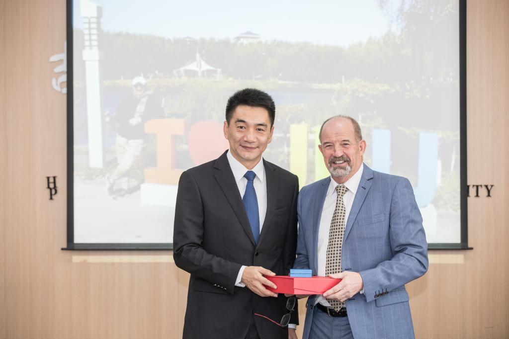 最后,伟德体育经理裘鹏及领导班子成员就如何与澳大利亚南昆士兰大学在本科生联合培养、教师互访、硕士和博士研究生短期交流、教师科研能力拓展等方面开展交流合作与彼得·特里教授进行了深入交流和探讨。与会教师也与彼得·特里教授就其研究领域的相关问题进行了充分交流。双方互赠礼物表达友谊。座谈会在热烈的气氛中圆满结束。