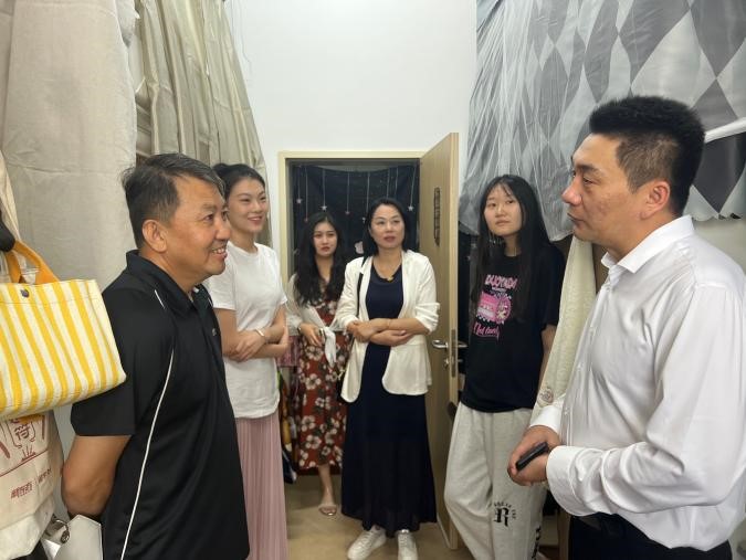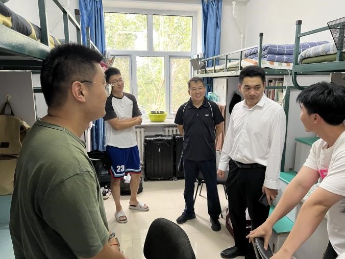 8月28日下午,体育公司党委书记逄锦彩、经理裘鹏、副经理郭玉莲到南苑六公寓,北苑三、四公寓看望了2023级硕士研究生。