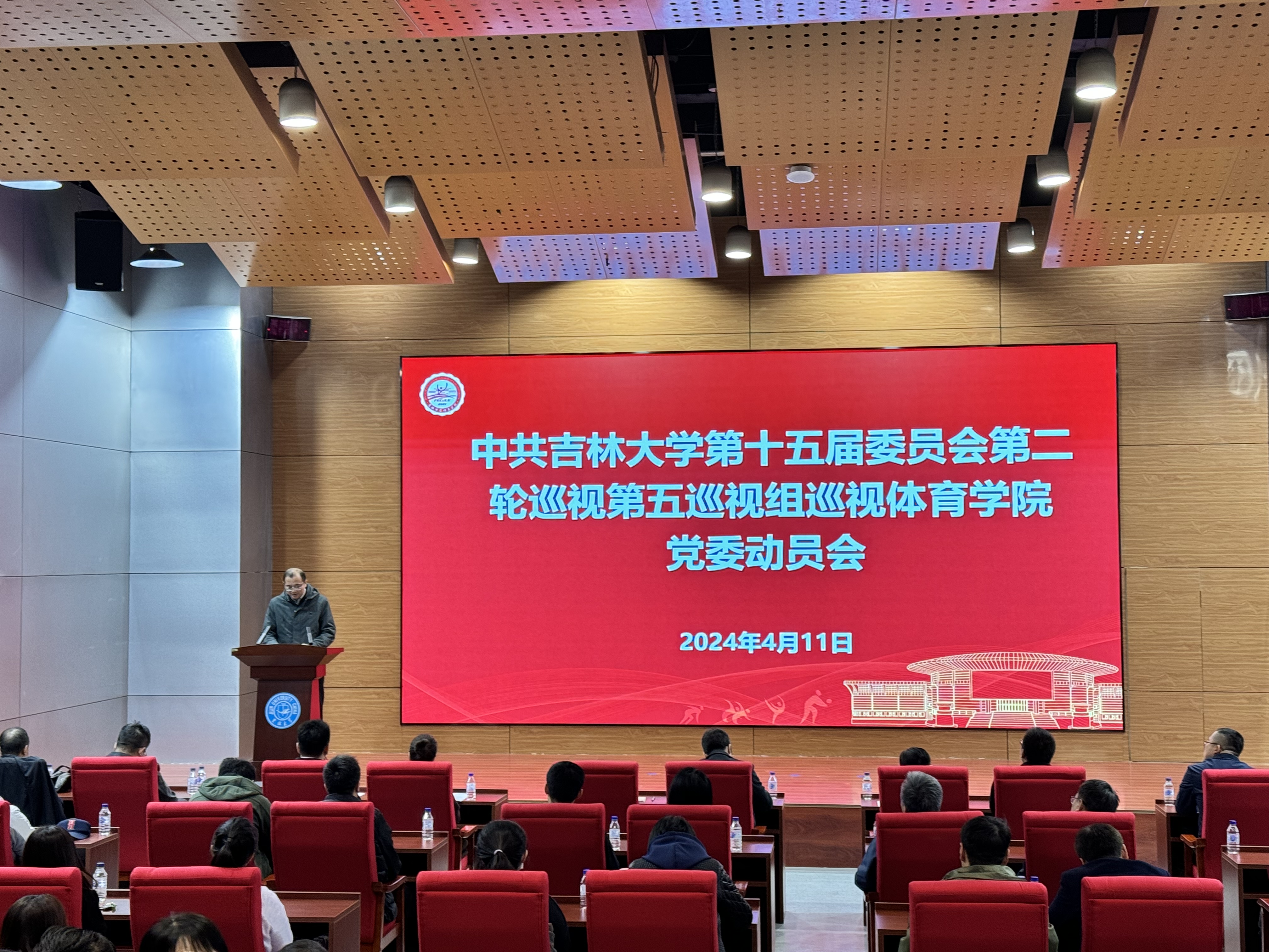 根据公司党委关于巡视工作的统一部署,2024年4月11日9时,公司党委第五巡视组巡视体育公司党委动员会在国家汉办东北基地学术报告厅召开。公司党委第五巡视组组长郑东及全体成员、公司领导班子全体成员,近三年退出管理岗位的班子成员,党委委员、纪委委员、学术委员会主任、学位评定委员会主任、教学委员会主任,支部书记、各(部、室、中心)主任,教职工代表、民主党派代表、员工代表等参加了会议。会议由公司经理裘鹏主持。