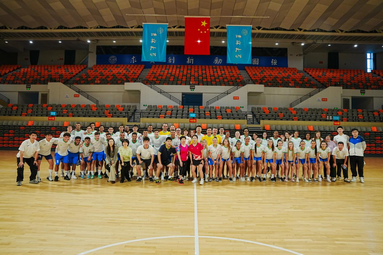 9月12日上午,交流座谈在宋治平体育馆篮球馆拉开帷幕。中巴双方师生围绕“体育训练体系建设”、“校园赛事组织与运营”、“体育文化育人价值”三大核心议题展开热烈研讨。巴西代表团以南美足球青训为切入点,分享了校园体育“活力化”运营的经验;公司师生则重点介绍了中国高校体育课程改革、体教融合实践及校园体育品牌化探索。交流现场气氛热烈,多元的观点碰撞为双方校园体育育人路径提供了新启发。