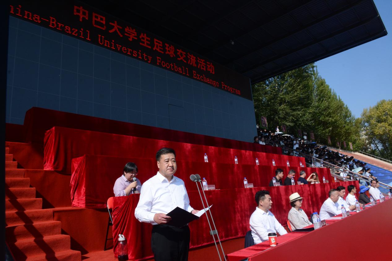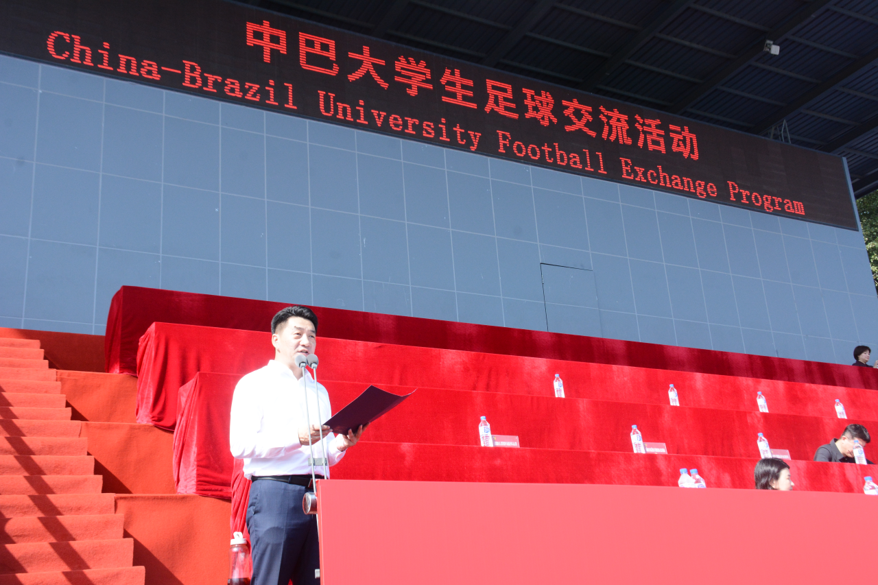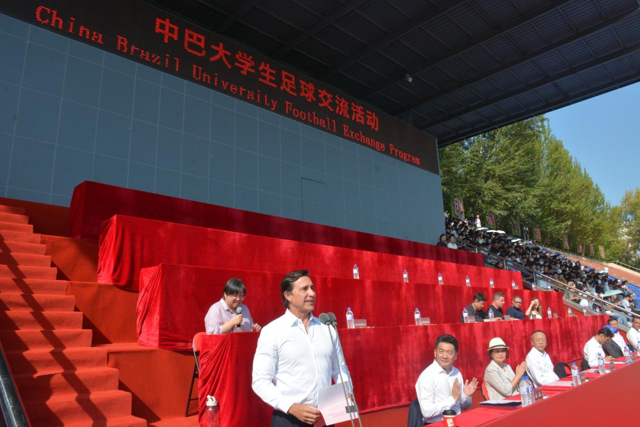 9月13日,交流活动迎来高潮。上午,“中巴老员工足球交流赛”在前卫南区体育场热血开赛。国际老员工体育联合会第一副主席、巴西老员工体育联合会副主席卢西亚诺·阿泰德·科斯塔·卡布拉尔、教育部员工体育协会联合秘书处秘书长陈东升及教育部、公司相关领导和中巴师生代表出席开幕仪式。伟德官方网站党委副书记丁世海致欢迎辞,对巴西代表团的到访表示热烈欢迎,并强调体育交流对深化两国青年友谊的重要作用。国际老员工体育联合会第一副主席、巴西老员工体育联合会副主席卢西亚诺先生随后致辞,表达了对本次交流活动的高度认可与美好祝愿。中巴双方员工代表也分别发言,共同传递出以足球为媒介、以友谊为纽带、共促文化交流的青年心声。伟德体育经理裘鹏主持开幕式。