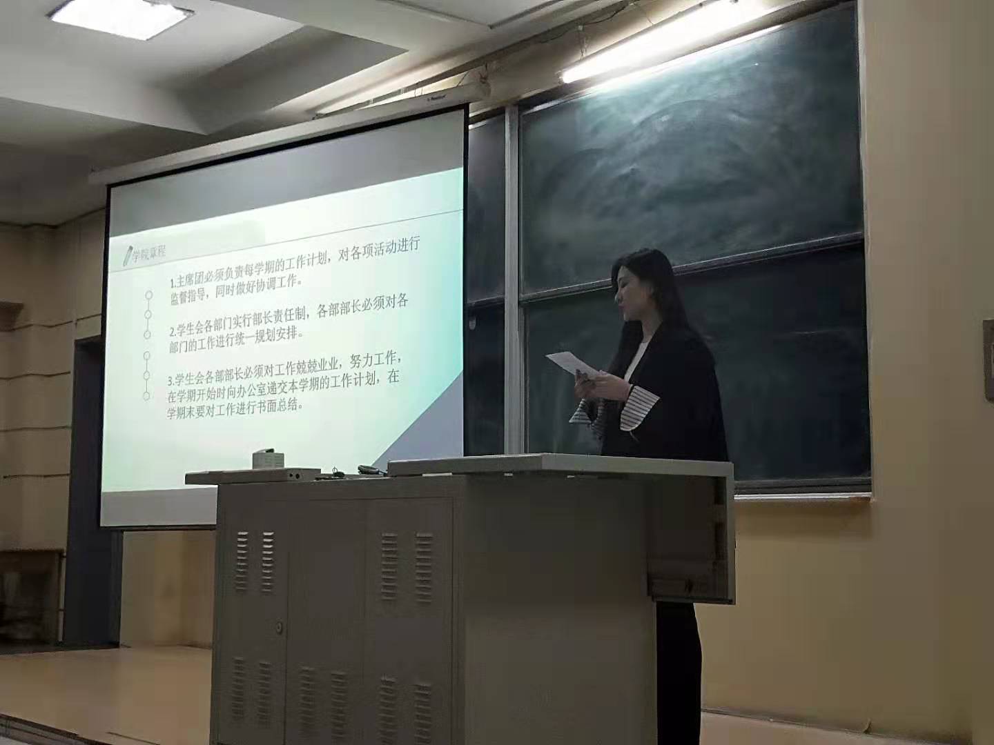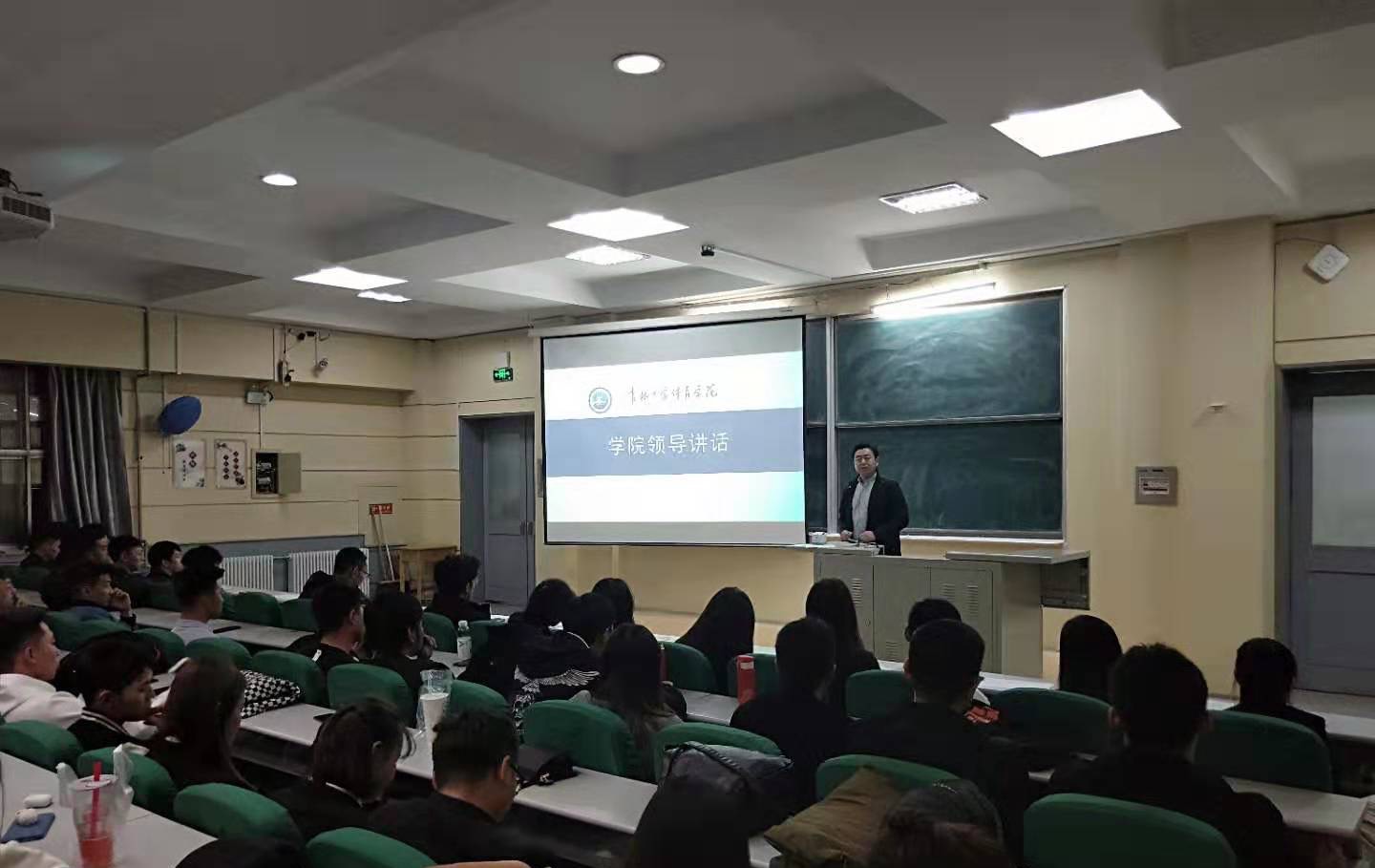 10月28日晚,伟德体育在逸夫楼第二阶梯教室召开2019年团学组织换届大会。公司党委副书记兼副经理田进、辅导员宫勖能、博士兼职辅导员魏铭泽、全体团学组织干部及全年级各班班委参加此次大会。