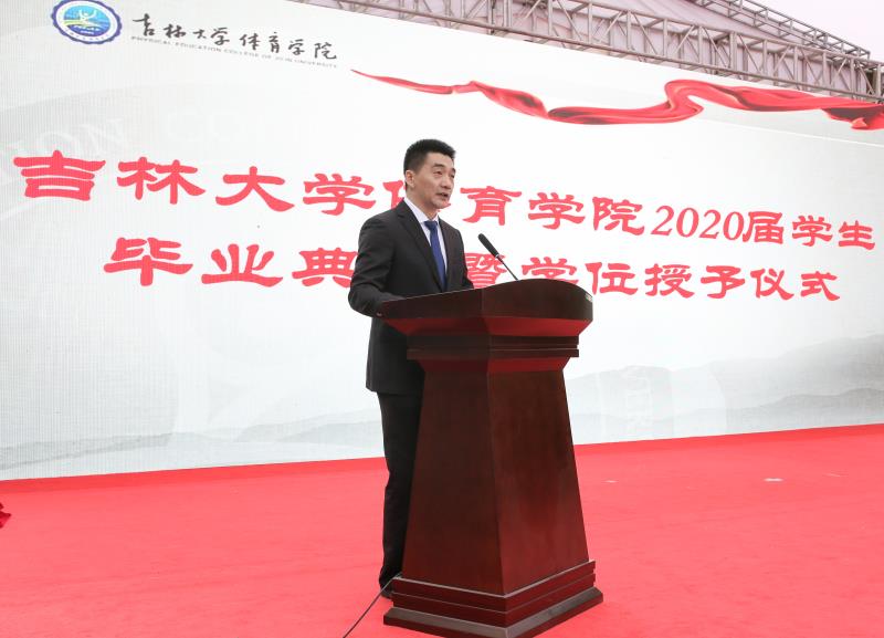 之后,裘鹏经理致辞,表达了对毕业生的思念和不舍,对毕业生寄予了期望和嘱托。他希望毕业生同学们能够始终保持终生学习的热情、拥有战胜困难的勇气、培养敢于挑战的精神、葆有知足感恩的心灵,期待同学们能够行稳致远、笃学实干,拥有健康的体魄、阳光的精神,担当起时代赋予的使命和责任,为国家体育事业的蓬勃发展做出应有的贡献。