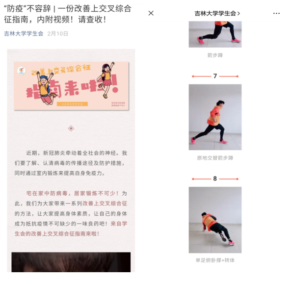疫情期间,伟德体育员工会协助校员工会制作了三期线上锻炼的推文,累计阅读量5000余次。推文内容是由公司员工会骨干张熙策、姜熙宁、赵偲艺等向大家普及运动常识和各种健身动作,并组建了健身打卡群,居家期间为同学们答疑解惑,分享经验。