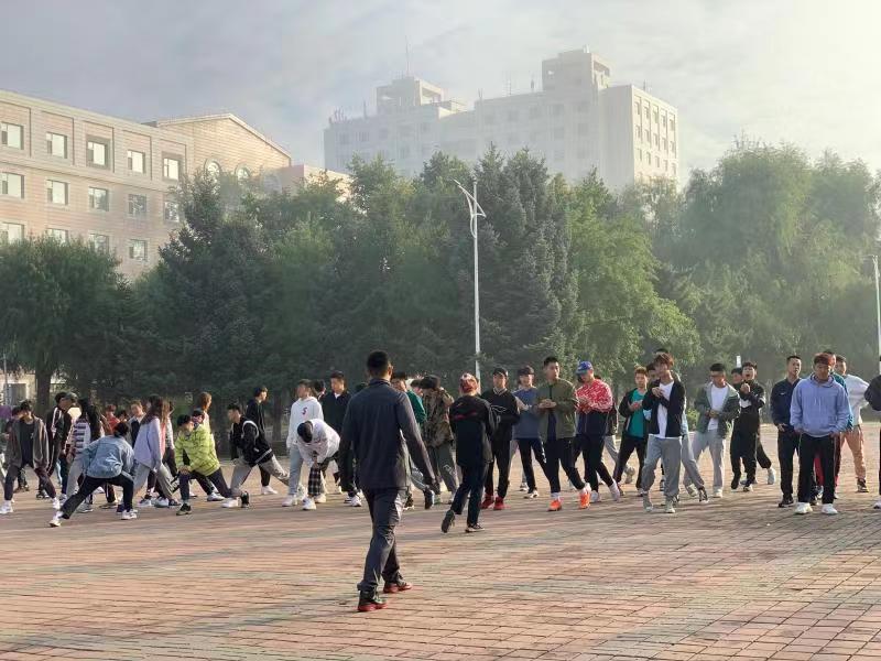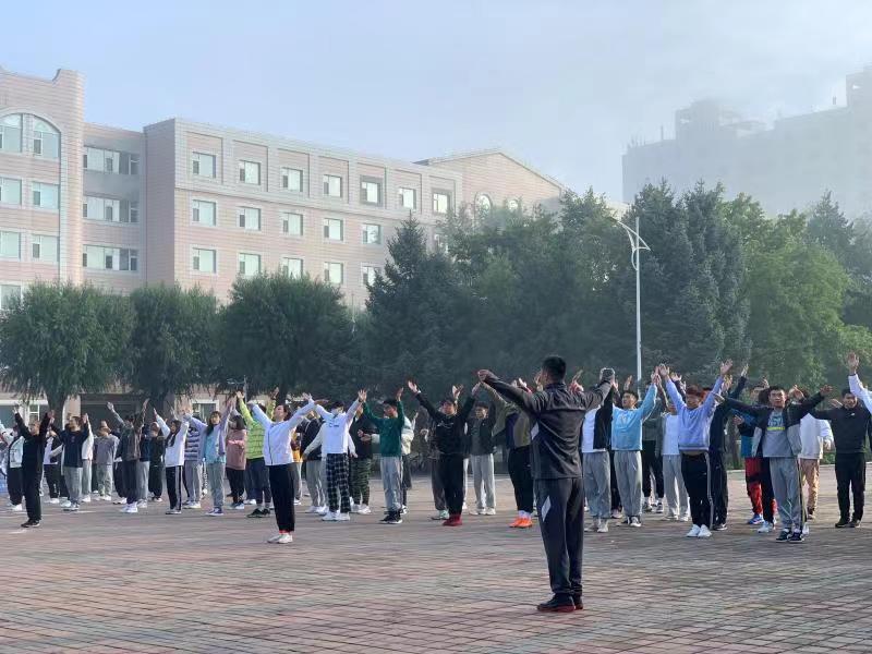 在2021年9月14日早上6点35分伟德体育2020级于体育馆阶梯处准时集合完毕,由于田径场维修,地点初步定于体育馆门前集合,由员工干部严格按照标准执行考勤工作后带领同学进行早操。辅导员王祎老师带领大家按照预定路线慢跑至体育馆北侧广场练习广播体操,在跑步中,体育委员带领班级同学喊口号。各个班级踏着整齐的步伐,喊着响亮的口号。在练习体操中动作整齐。充满朝气与活力,成为一道亮丽的风景线。辅导员陪伴同学一起进行活动并示范练习。待早操结束后辅导员作出总结,随后班委整队带回。