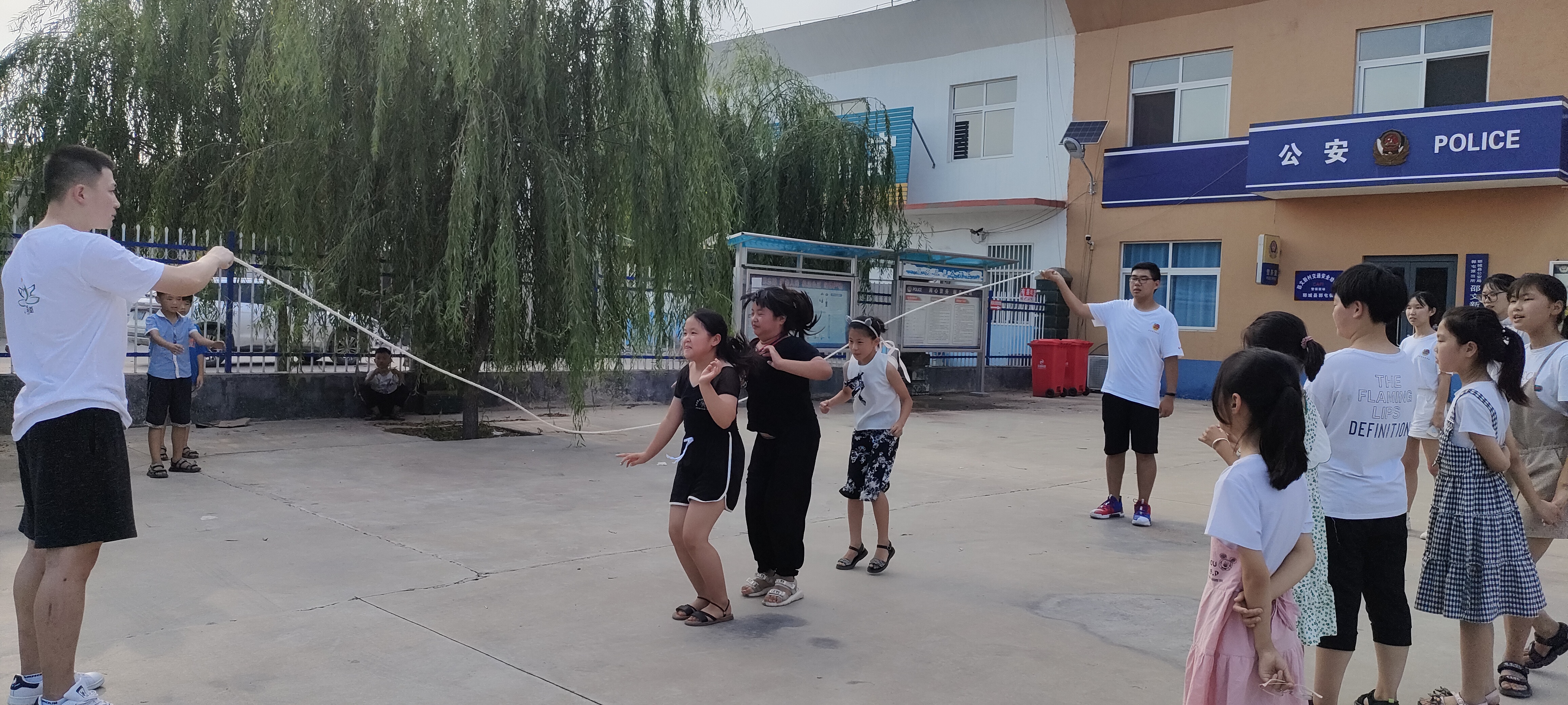 李昊同学为了帮助当地中员工拓展视野,提高身体素质,在常规的基础课程外,他还为当地的员工们设计了诸多素质拓展课程,素质拓展课程内容丰富多彩,效果十分明显。课余时间里,李昊同学还深入孩子们的家庭,开展家访活动,进一步了解孩子们的学习、生活和家庭情况,利用自身经验帮助孩子们对未来进行思考与规划。此外,李昊同学还前往当地的寿山抗日纪念碑与水库进行考察,深入了解当地风土人情,加深爱国情怀。