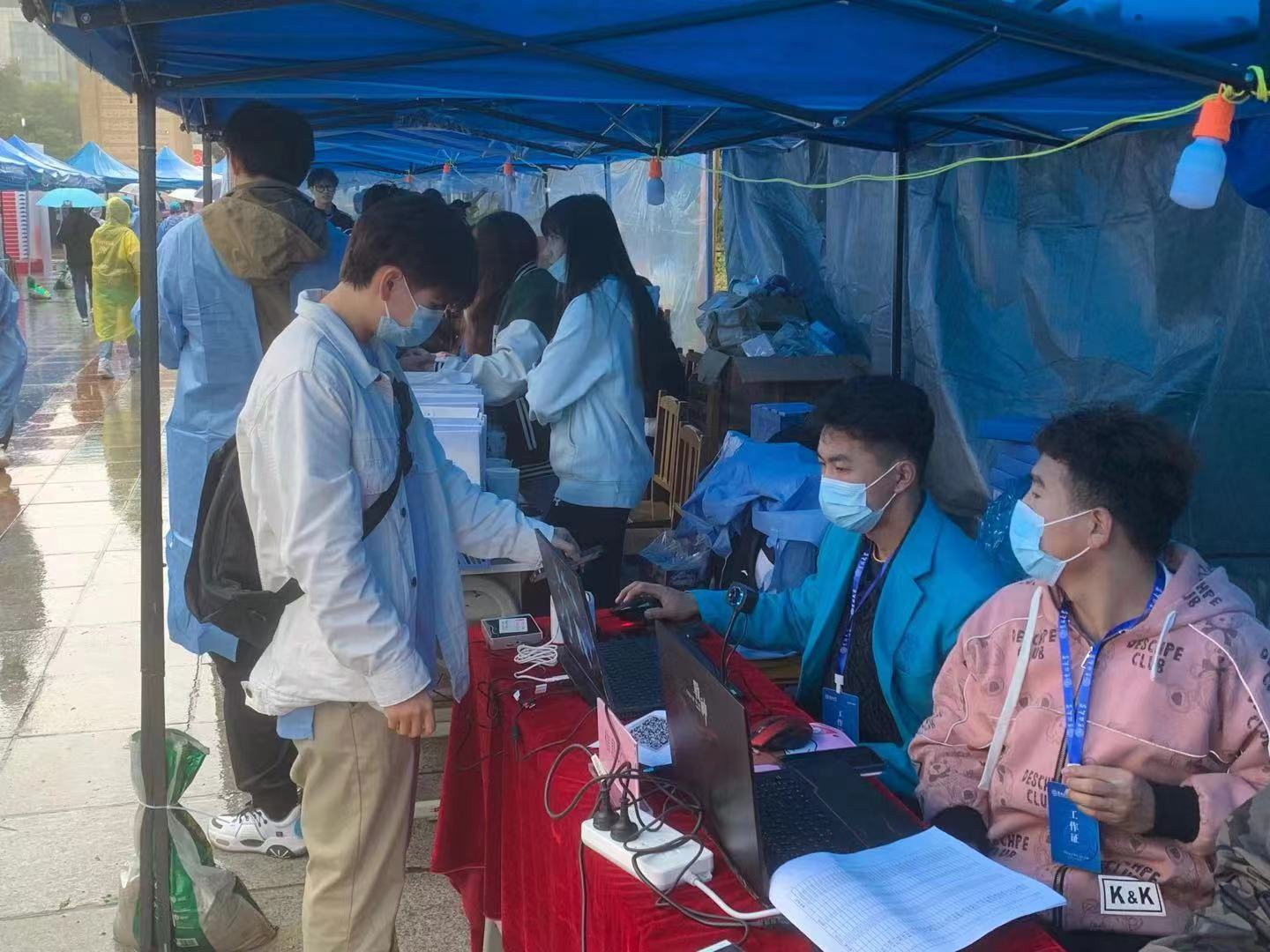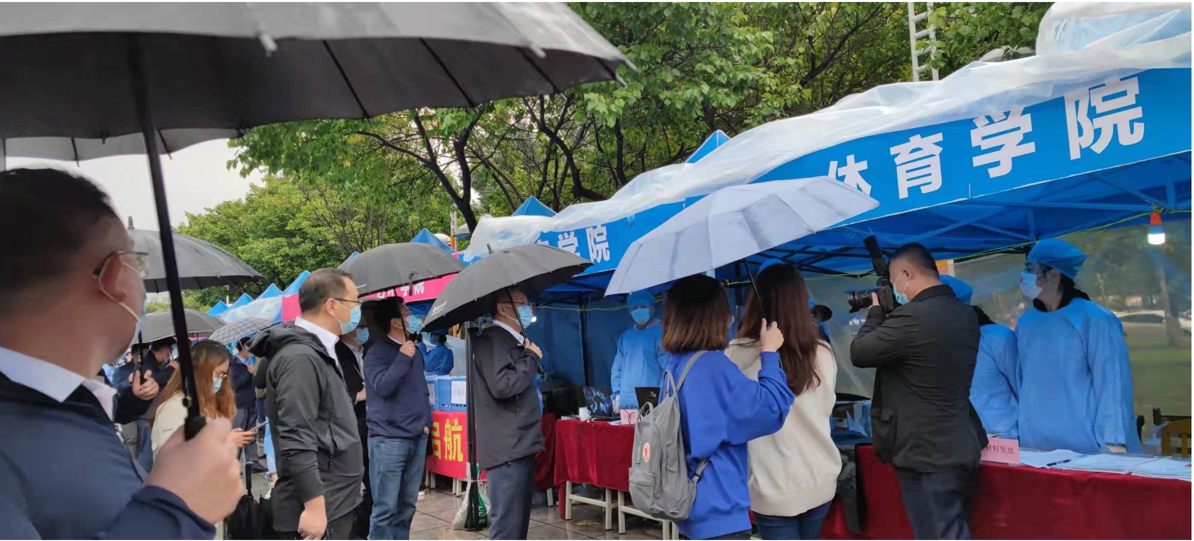 9月22日上午七点,迎新工作开始,志愿者们负责检查新生报道所需录取通知书、核实身份证验证新生身份、检查“个人防疫行程卡”、收取高中员工档案及党、团关系资料,并发放防疫“健康包”、新生材料袋。新生按照防疫要求报到全程佩戴口罩。期间,公司党委常务副书记冯正玉来到体育公司的帐篷前,向工作人员和新生们表示亲切慰问。